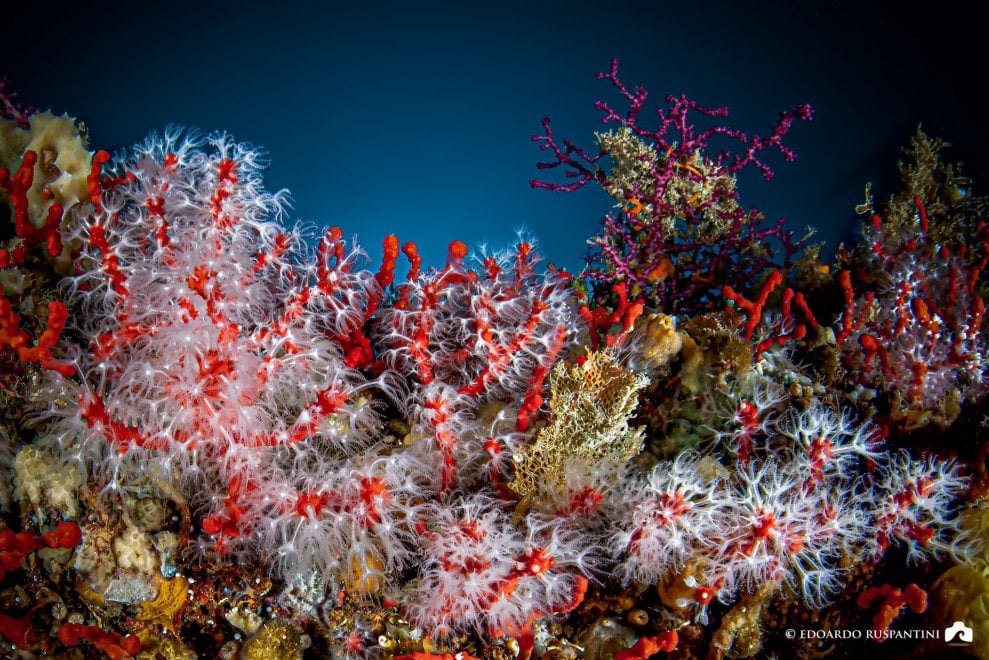 Il trionfo del corallo rosso lungo una delle più belle pareti del Mediterraneo, compresa nell’area marina protetta Regno di Nettuno, dove proliferano anche spugne di ogni genere, coralli, gorgonie e paramuricee in una irresistibile tavolozza di colori, attrae appassionati da tutto il mondo per immersioni di straordinario impatto. Lo scatto del fotosub napoletano Edoardo Ruspantini, classe 1961, sembra quasi un quadro: “Una bellezza da tutelare e salvaguardare”, commenta.
