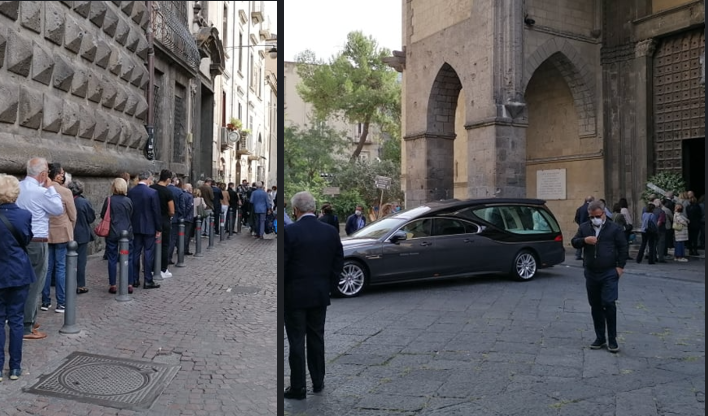 Una lunga fila di persone perse nel silenzio e nel proprio sguardo attonito e colmo di dolore. Rispettosi del distanziamento sociale e con in viso la mascherina, uomini e donne hanno voluto dare l’ultimo saluto all’11enne che si è tolto la vita in questi giorni a Napoli.
