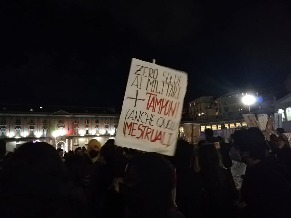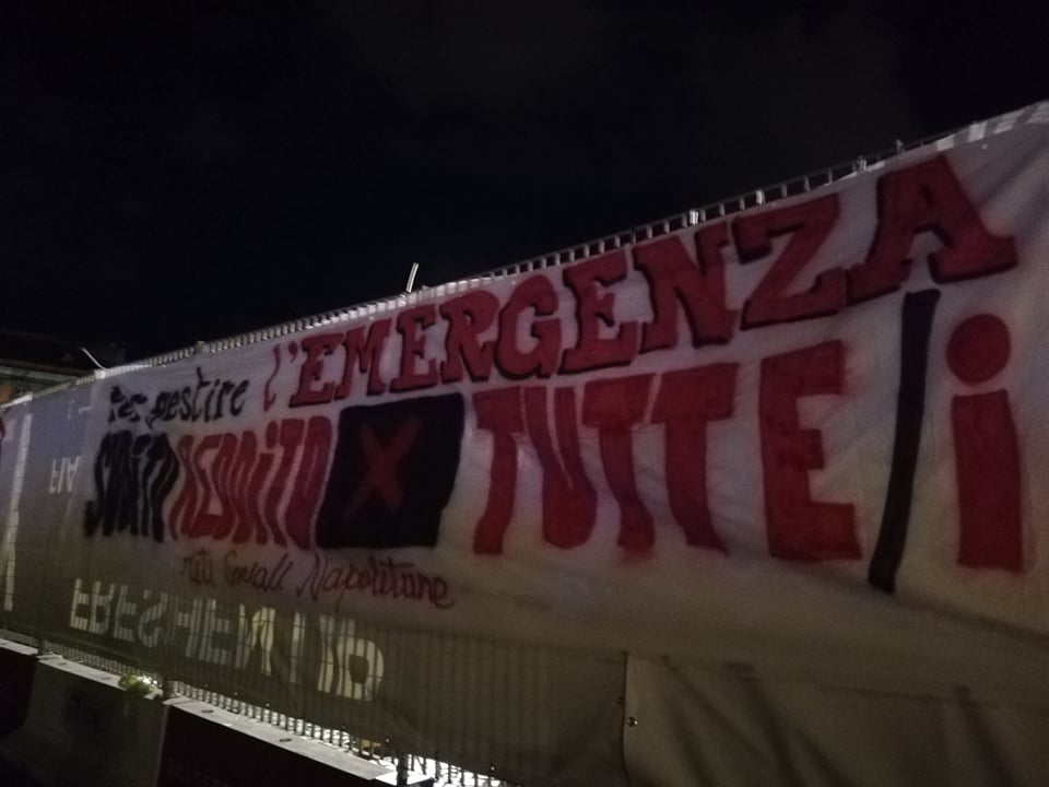 Piazza del Plebiscito blindata per la manifestazione. Una piccola folla e’ gia’ riunita in piazza. Ad accogliere i manifestanti c’è un bel dispiegamento di forze dell’ordine, tra polizia, carabinieri e Guardia di Finanza. Esposti striscioni che recitano “Tu ci chiudi tu ci aiuti” e “Per gestire l’emergenza subito reddito per tutte/i“. Le camionette delle forze dell’ordine sono schierate davanti a tutti gli accessi della piazza.