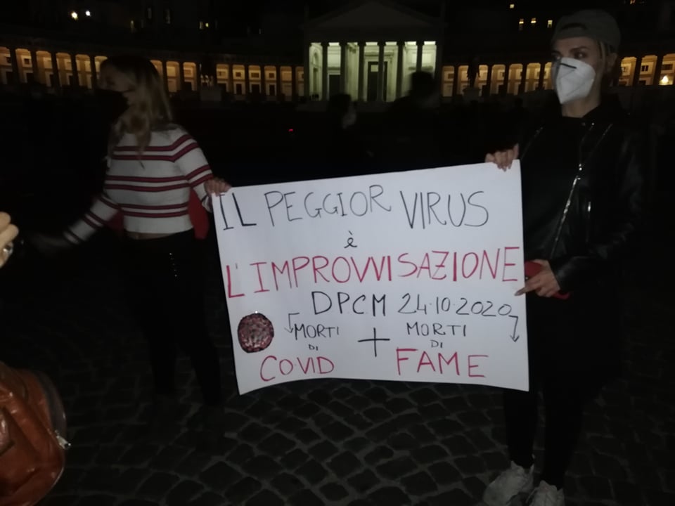 Continuano le proteste a Napoli dei commercianti e degli artigiani contro il DPCM del 24 ottobre. Oggi è stata indetta una manifestazione a Piazza Plebiscito, alle 18, per protestare contro le misure del governo. In piazza saranno presenti tutti i cittadini che si sentono colpiti dalle ultime disposizioni: dai lavoratori alle partite iva, dagli studenti ai disoccupati, fino agli attivisti dei collettivi del napoletano e le associazioni di volontariato.