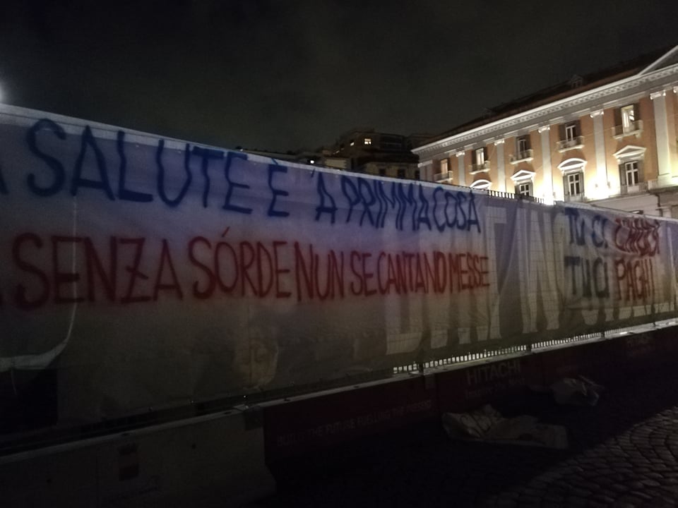 Lo slogan della manifestazione è: ” ‘A salute è ‘a primma cosa ma senza sorde nun se cantano messe?” Da giorni i commercianti e gli imprenditori napoletani sono scesi in strada per manifestare contro le ordinanze regionali e le norme nazionali anti-Covid.