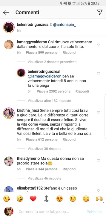 A distanza di mesi l’argentina non fa che pubblicare foto con Spinalbese sui social e quindi i fan, delusi anche dal sogno d’amore infranto con De Martino, lasciano commenti poco carini e critici. Proprio rispondendo a uno di questi commenti, la conduttrice ha fatto una rivelazione inedita. Al commento di un utente: “Chi rimuove velocemente dalla mente e dal cuore ha solo finto”, la Rodriguez ha risposto: “Beh se velocemente intendi 8 anni, sì non fa una piega”. Insomma per la prima volta l’argentina rivela di aver rimosso dal proprio cuore l’ex marito già dalla prima rottura. Probabilmente il riavvicinamento di quest’ultimo ha fatto nascere in lei il desiderio di dare al figlio Santiago una famiglia unita, desiderio però che si è scontrato con la realtà: incompatibilità e fine dell’amore.