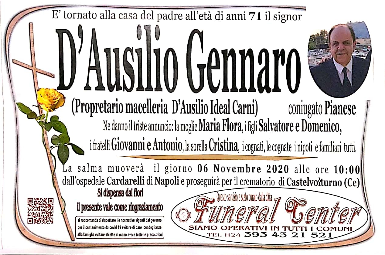 A dare notizia della tragica scomparsa di Gennaro è stato il nipote: “Era una persona buona e stimata da tutti. Vogliamo onorare una persona conosciuta nel nostro paese. Tutti ricordavano il suo modo di essere sempre presente disponibile e per essere stato l’amico di tutti. Gennaro d’Ausilio svolgeva il suo lavoro con passione riuscendo a trasmettere ai suoi clienti lo stesso amore”.