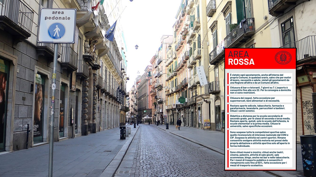La Campania da domenica entrerà nella zona rossa, quella che il Dpcm firmato lo scorso 4 novembre definisce “scenario di massima gravità”, dunque cambieranno le regole da osservare e ci saranno ulteriori chiusure rispetto alla situazione di zona gialla.