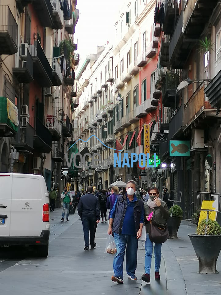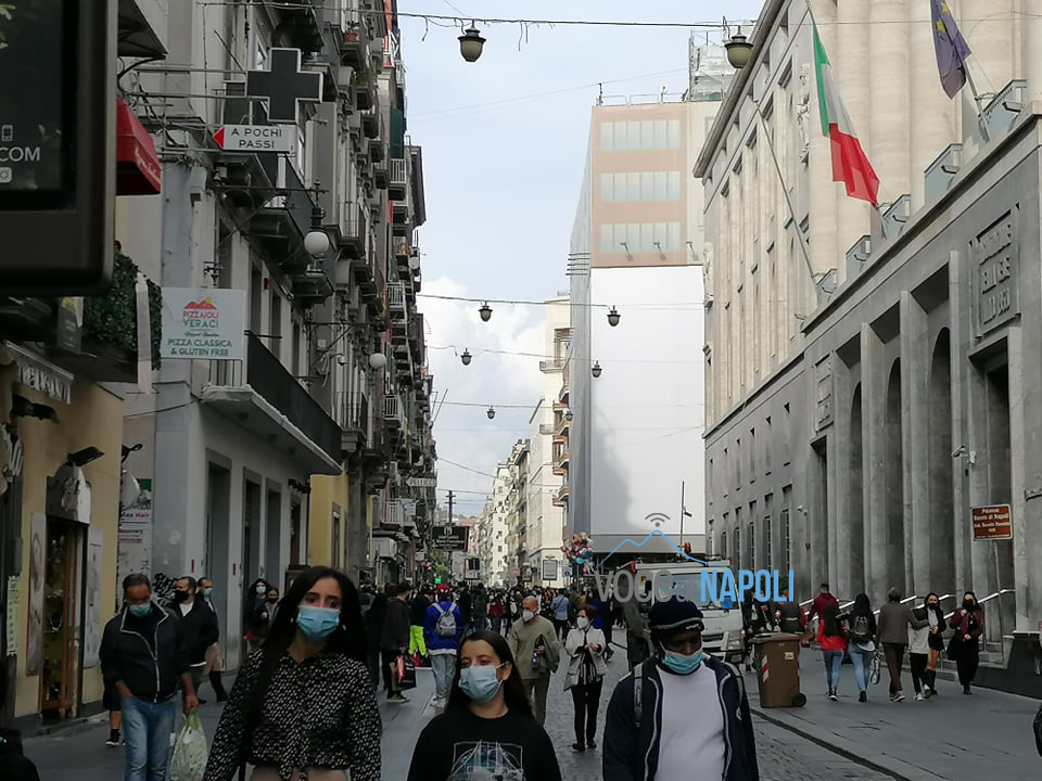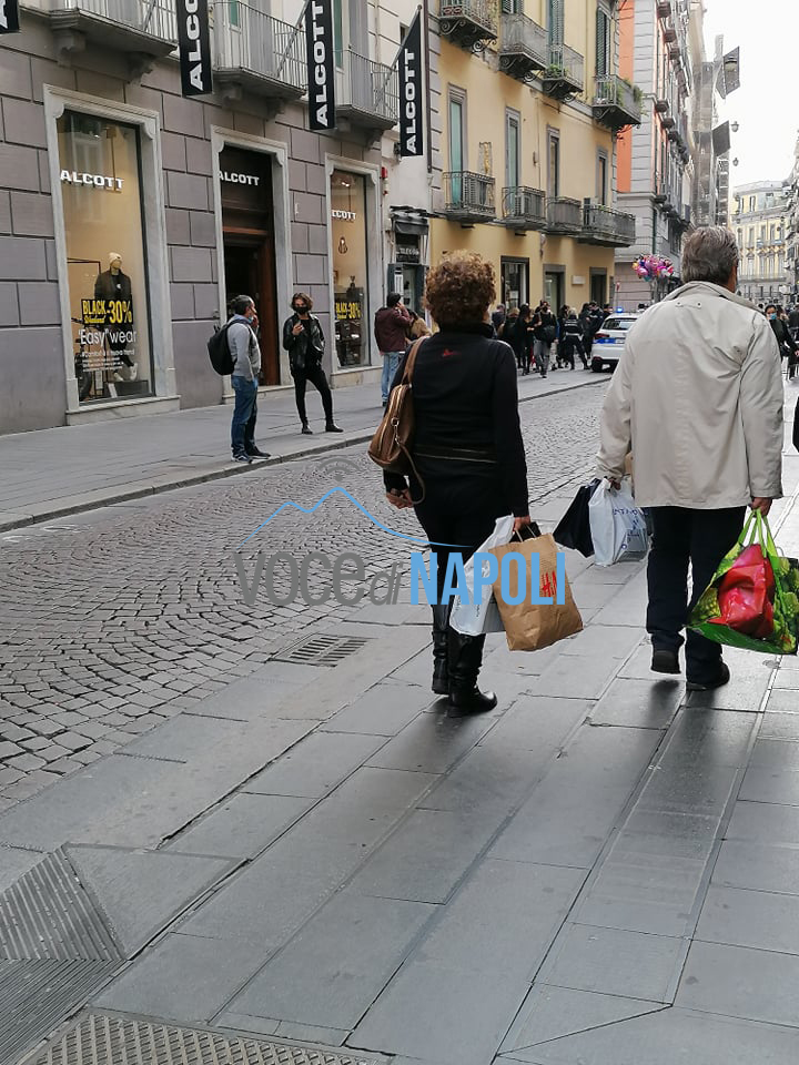 L’ultimo sabato “libero”, si fa per dire, regala un’immagine di Napoli poco diversa da quella dell’ultimo weekend. Sebbene il lungomare non si sia riempito come l’ultimo fine settimana e le piazze cittadine appaiono poco popolate, le strade dei negozi invece, si sono riempite.
