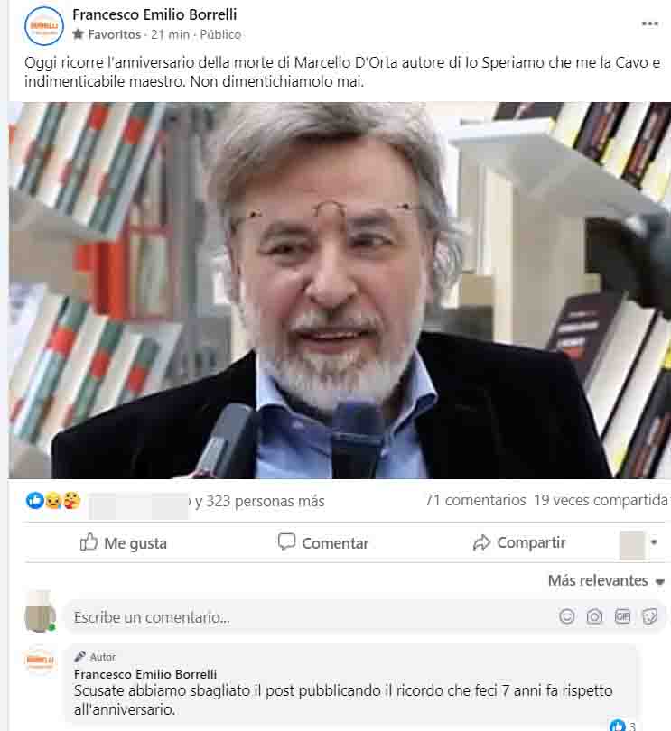 Borrelli parla di un errore di distrazione in cui sarebbe stato confuso un ricordo pubblicato anni fa. Oppure potrebbe essere stata la fretta di commentare un articolo in ricordo di un autore scomparso, senza ‘sapere” che in realtà era morto nel 2013.