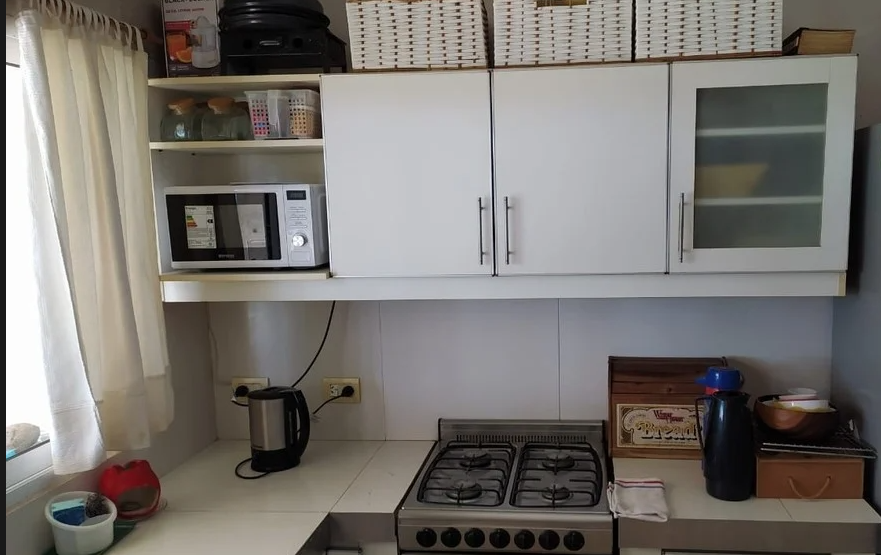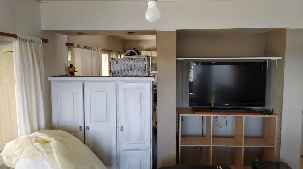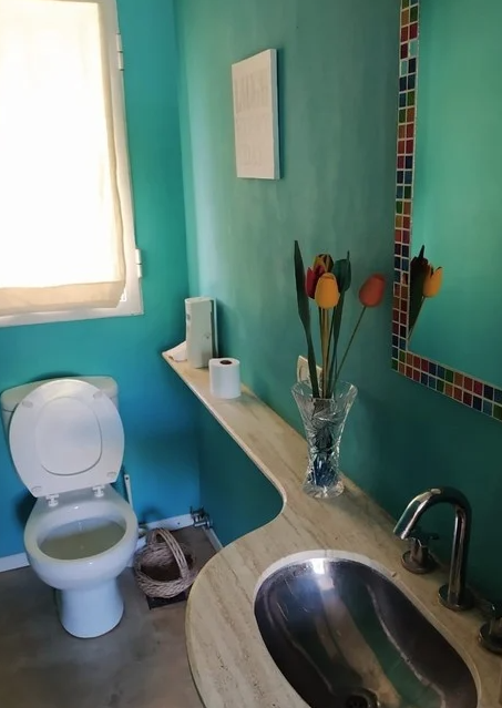 Un grazioso appartamento con una veranda che affaccia su di una veranda con giardino e bella vista. Un salotto con tv, sala da pranzo, camera da letto e cucina. Poi il tanto discusso bagno, una struttura chimica.