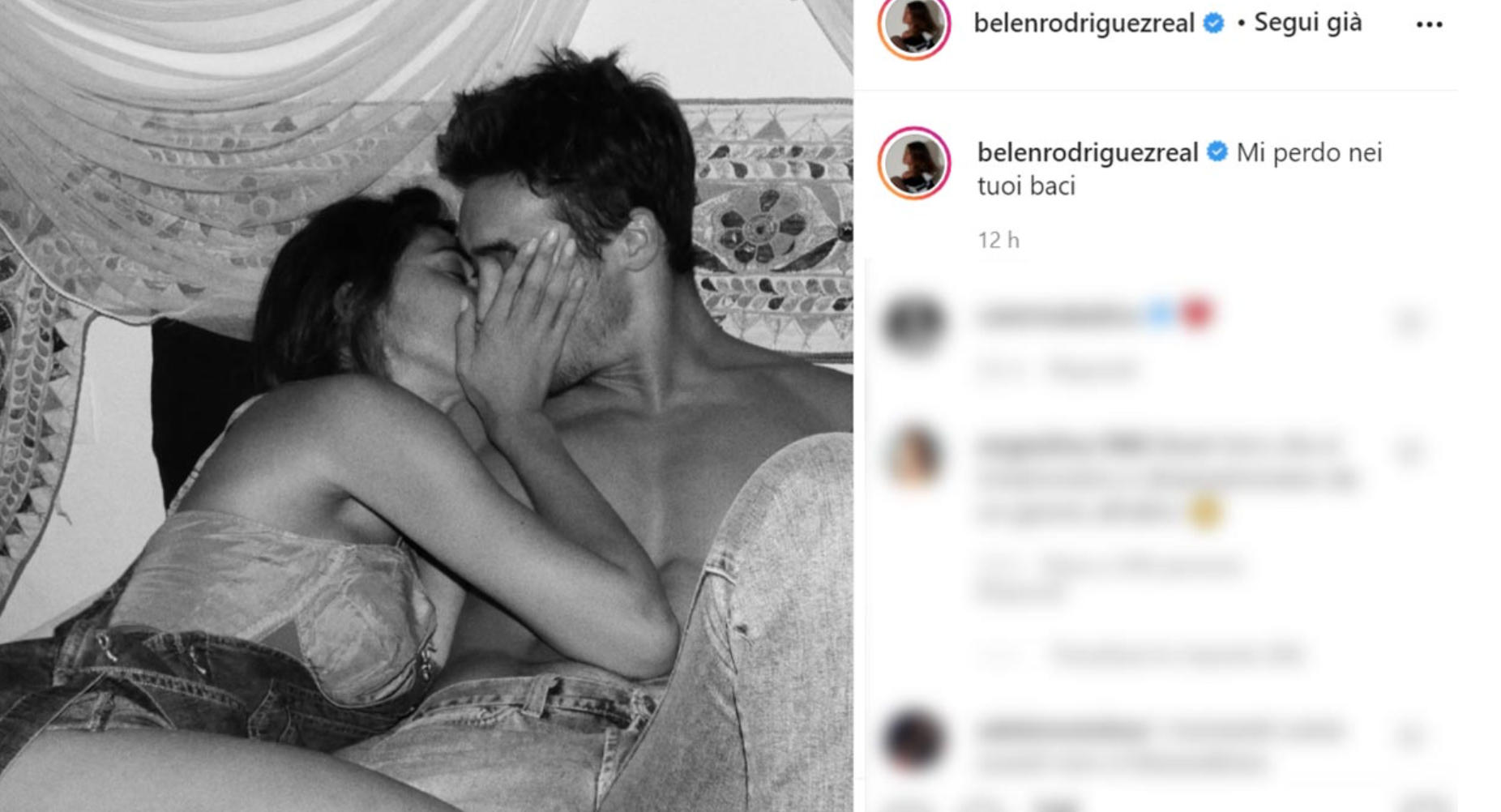 La showgirl ha regalato ai fan un momento di amore, dolcezza ed eros mostrandosi subito dopo (o poco prima) essersi data a tenere e rocambolesche effusioni con il giovane Spinalbese. Nello scatto, mostrato in bianco e nero su Instagram, si vede l’abbigliamento intimo sexy della soubrette. Un dettaglio che non sfugge ai follower della Rodriguez, super attenti alle forme e alla bellezza della ragazza.