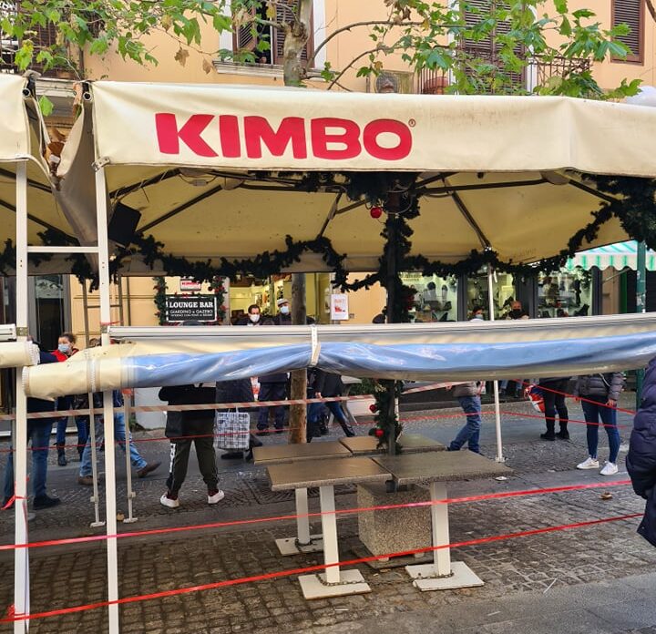 Si infoltisce il fronte delle persone che manifesta contro la decisione del governatore De Luca di mantenere la Campania in fascia arancione, impedendo cosi’ l’apertura a pranzo del settore con servizio ai tavoli.