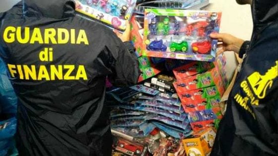 Blitz di Natale porta a maxi sequestro. Giocattoli, materiale scolastico ma anche mascherine prive di qualsiasi requisito di sicurezza: è quanto ha scoperto il comando provinciale della Guardia di Finanza di Napoli, a Pollena Trocchia, in una fabbrica abusiva specializzata nella lavorazione e nel confezionamento di prodotti per bambini e adolescenti non sicuri e con marchi contraffatti.