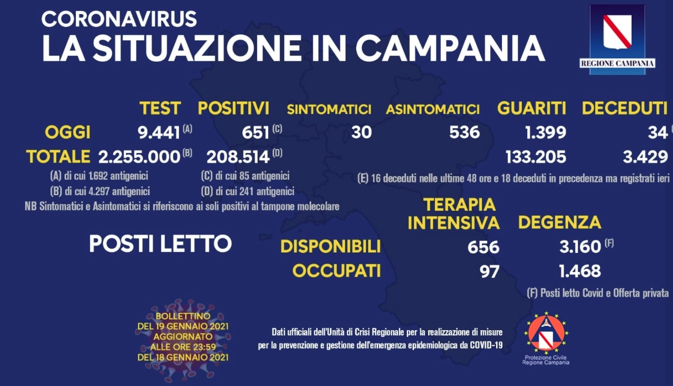 COVID-19, IL BOLLETTINO ORDINARIO DELL’UNITÀ DI CRISI DELLA REGIONE CAMPANIA