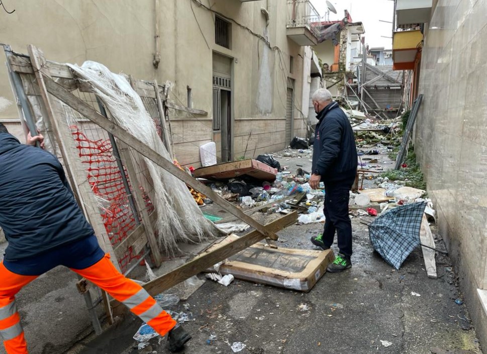 Effettuata una pulizia straordinaria in via Giannangeli a Sant’Antimo. La strada è salita agli onori della cronaca nel 2017 perché interessata dal crollo di un appartamento del civico numero 35, che ha reso necessario lo sfollamento dell’edificio e di quelli limitrofi (questi ultimi per un periodo limitato). Dopo quasi quattro anni, i condomini del palazzo danneggiato ancora non sono potuti rientrare nelle loro case e sono stati costretti a trovare situazioni alternative, come fittare un altro immobile o chiedere aiuto ai propri familiari.