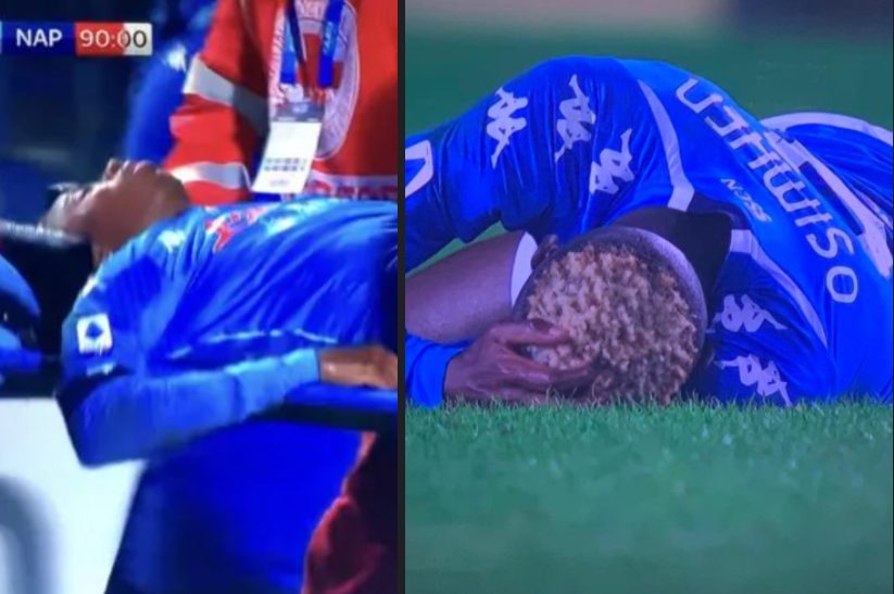 Ci sono stati momenti di grande apprensione e spavento tra i giocatori e sulle panchine nel vedere l’attaccante del Napoli venir portato via in barella ancora privo di conoscenza.