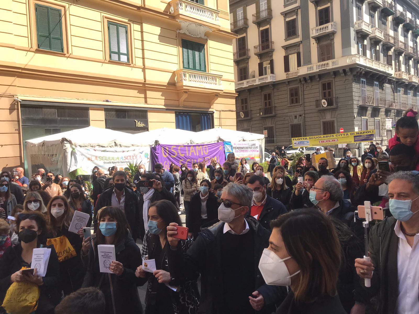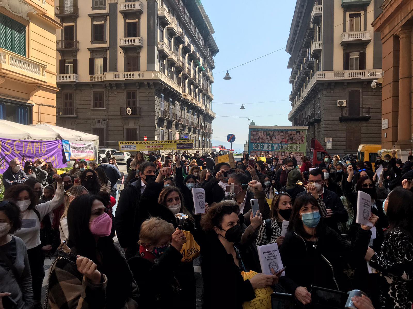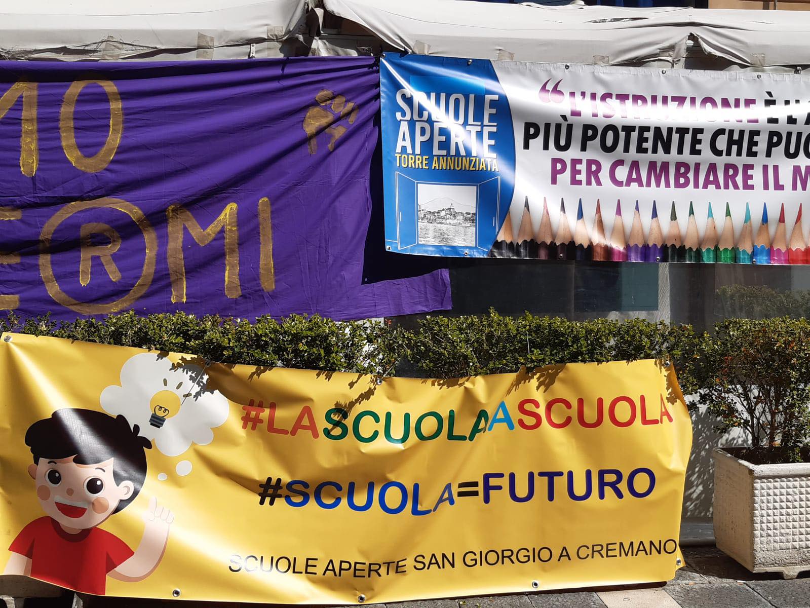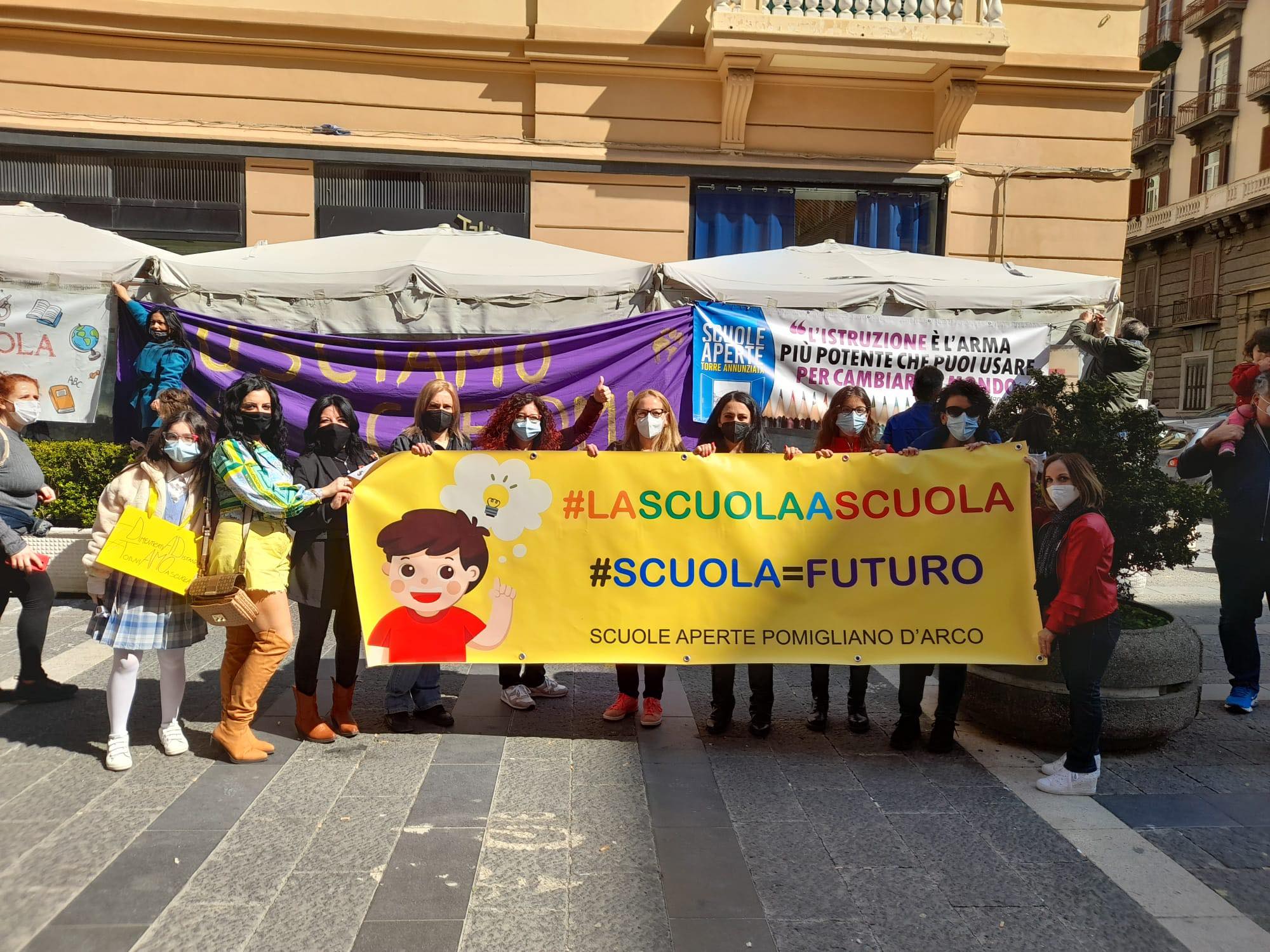 Abbiamo letto gli articoli della Costituzione che riguardano il diritto allo studio, abbiamo suonato le campanelle per farci sentire sul tema della riapertura delle scuole e infine abbiamo portato il famoso latte al plutonio, quello che secondo alcuni avremmo dato ai nostri figli desiderosi di tornare a scuola”, così Palmira Pratillo.