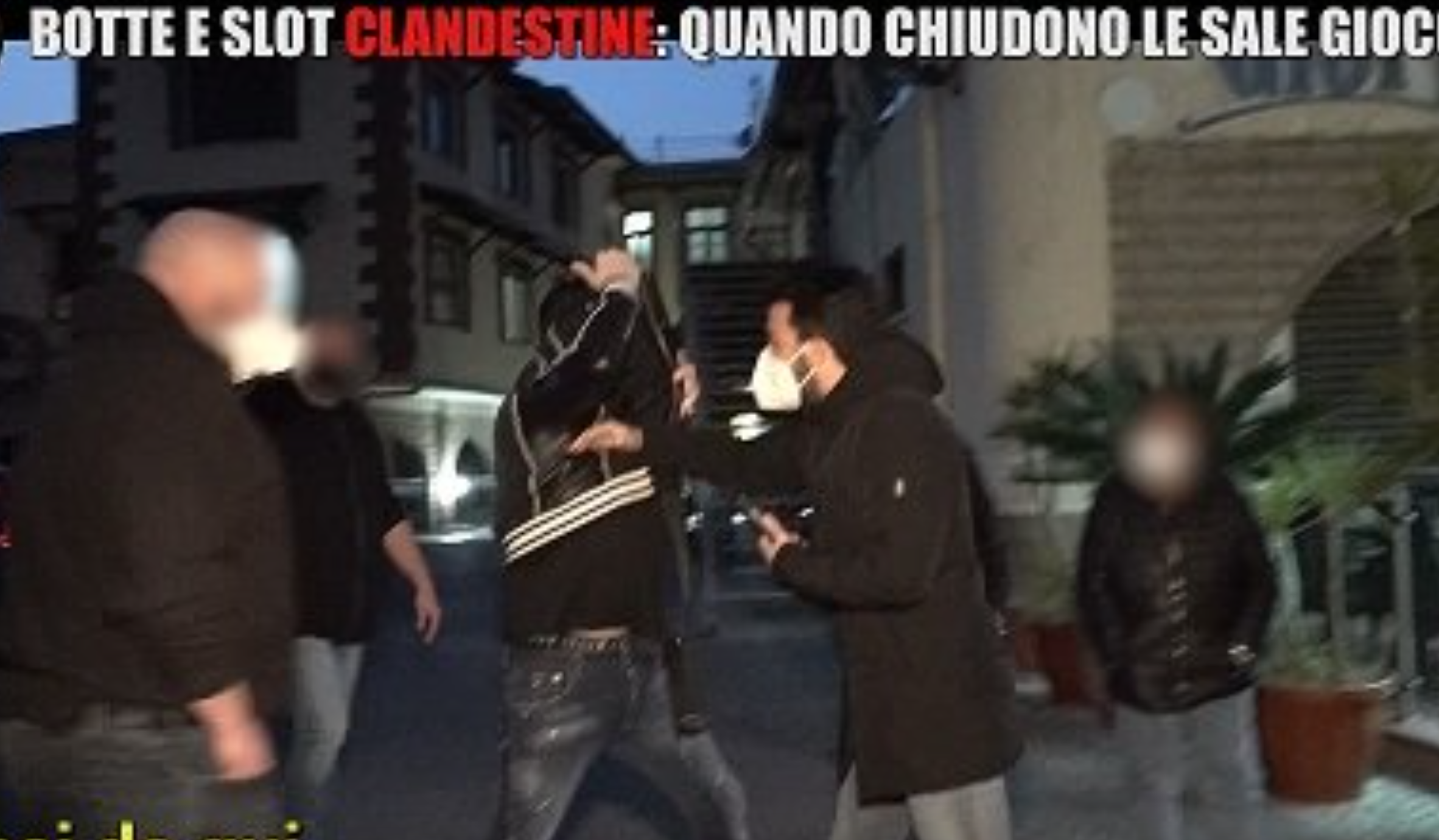 Di giorno il bar è aperto e la sala slot vuota, ma all’interno c’è accesa la macchina che cambia i soldi per giocare alle slot, come mai? Presto detto, Monteleone nota una porta che porta in un’altra zona del locale. Lì c’è la sala illegale dove decine di macchinette sono azionate. Proprio in quel momento parte l’aggressione: schiaffi, spintoni, minacce e una caccia all’inviato e al suo operatore.