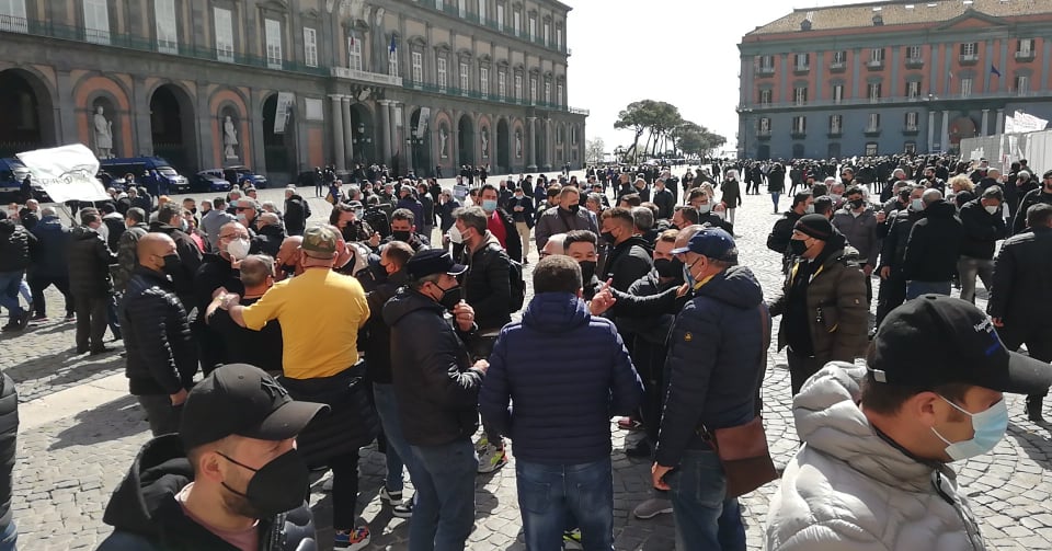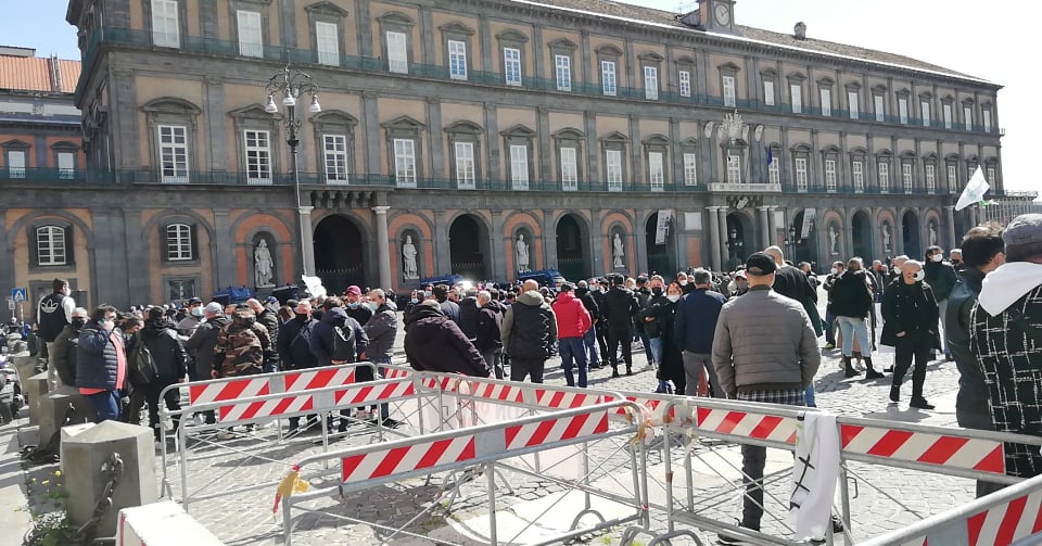 Napoli, commercianti in protesta invadono piazza Plebiscito