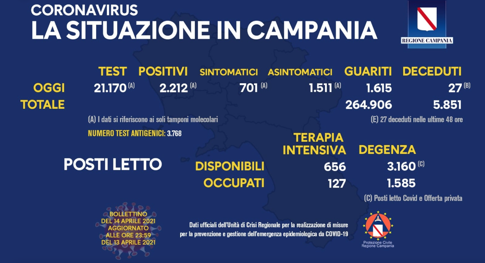 (dati…Pubblicato da Vincenzo De Luca su Mercoledì 14 aprile 2021