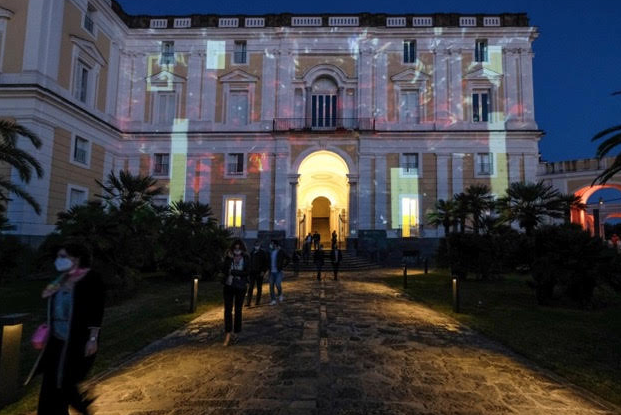 La mostra si chiude con il grande arazzo del giovane brasiliano Alexander Maxwell (prima opera su tela dell’artista) e le immagini della favela interagiscono con gli arredi ottocenteschi del “salottino dorato”. Promossa dalla Fondazione Ente Ville Vesuviane (che quest’anno compie 50 anni), il catalizzatore dell’ evento è la bellissima installazione, “Il Tripudio del Piacere Illuminato” in digital motion in cui la cultura si fa suono, musica, immagine.