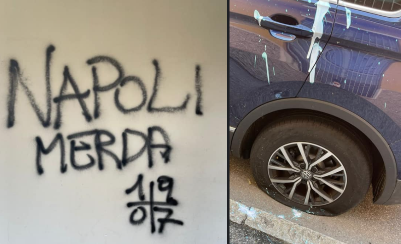 La scritta ‘Napoli m***a’ sotto casa, auto e locale vandalizzati: napoletano discriminato a Bergamo