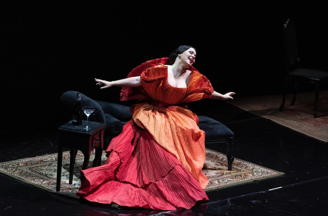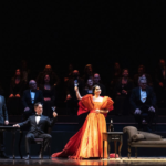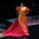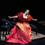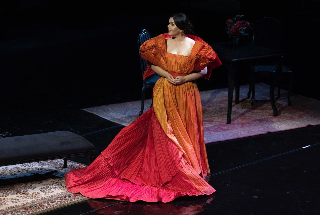 “Sono attrice e spettatrice di un grande evento. Mi è mancato l’abbraccio del pubblico che stasera fa da primadonna”, commossa, dietro le quinte, il soprano polacco fasciata in un sublime abito scultura di Capucci che risalta nel mezzo degli elementi scenici. E quando nel terzo atto lo lascia cadere su una sedia diventa scenografia.