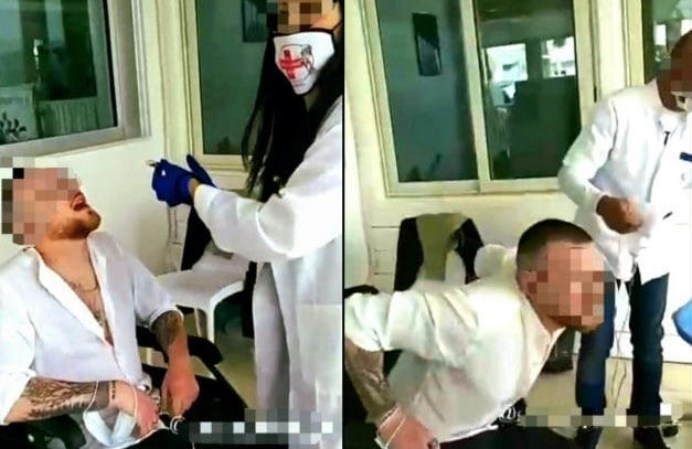 Una ragazza vestita da infermiera e munita di siringa, un giovane cliente nel ruolo di paziente seduto sopra una sedia a rotelle. Lei gli spruzza dell’alcol in bocca, lui salta e si alza dalla sedia. Il tutto ripreso e pubblicato sui social. la notizia è stata riportata da Fanpage.
