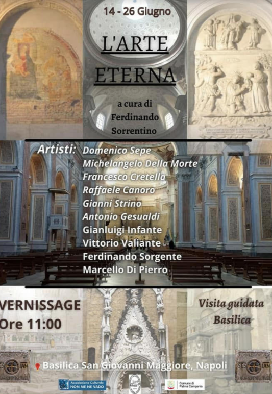 Nell’incantevole cornice della basilica di San Giovanni Maggiore, nel centro antico di Napoli, lunedì 14 giugno alle 11 sarà inaugurata la mini collettiva “L’arte eterna, con le opere di dieci artisti: Domenico Sepe, Francesco Cretella, Raffaele Canoro, Michelangelo Della Morte, Gianni Strino, Marcello Di Pierro, Antonio Gesualdi, Vittorio Valiante, Gianluigi Infante e Ferdinando Sorgente. La mostra è stata curata interamente dal direttore artistico Ferdinando Sorrentino per conto dell’associazione culturale “Non me ne vado” e porterà in scena la pittura classica nella suggestiva atmosfera della chiesa monumentale.