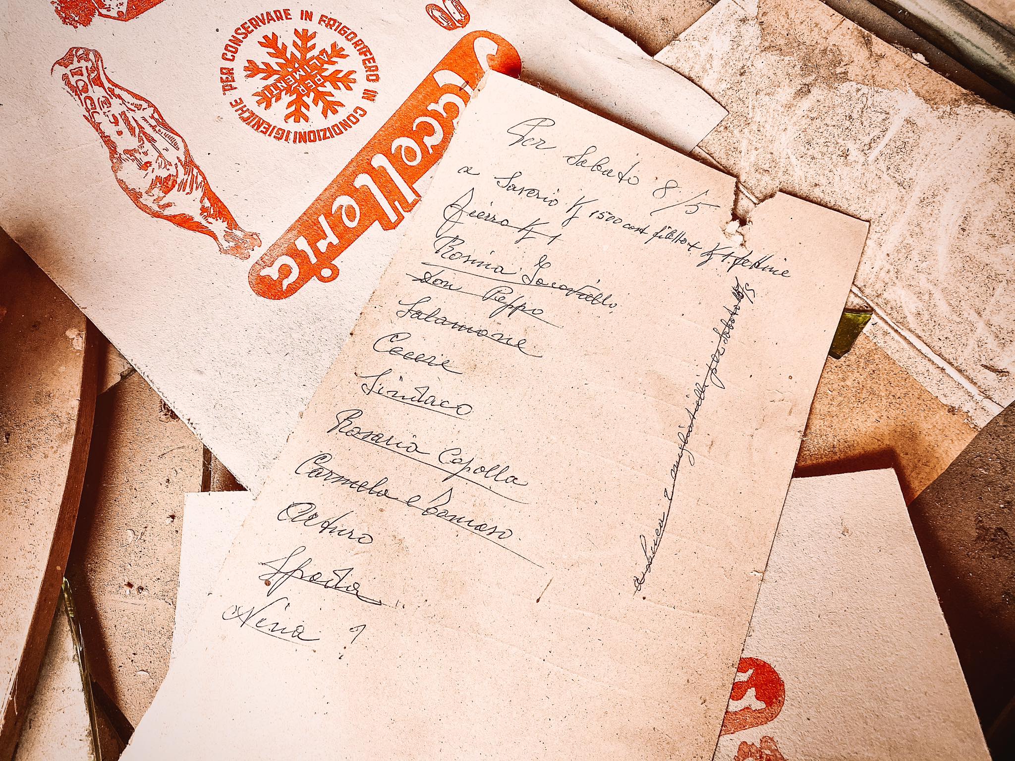 Non è difficile imbattersi in scarpe vecchie e logorate dal tempo, indumenti, mobili, piatti disposti sui tavoli come in attesa che sia pronto il pranzo, biciclette lasciate fuori casa, giocattoli, persino la lista dei clienti con i rispettivi ordini appuntati dal macellaio a penna.