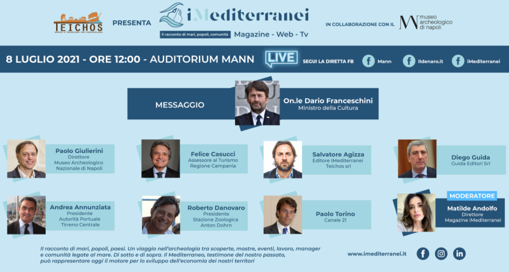 E’ fissata per giovedì 8 luglio alle ore 12 presso l’auditorium del Museo Archeologico Nazionale di Napoli (MANN), in occasione della Giornata internazionale del Mar Mediterraneo, la presentazione del nuovo brand editoriale iMediterranei. Nato su iniziativa di Salvatore Agizza, amministratore di Teichos srl (società che si occupa di fornire servizi e tecnologie per l’archeologia), il progetto prevede un magazine diretto dalla giornalista Matilde Andolfo e distribuito da Guida Editori, una trasmissione televisiva in onda su Canale 21, un sito web (www.imediterranei.it) sempre aggiornato e tre canali social per la condivisione dei contenuti multimediali.