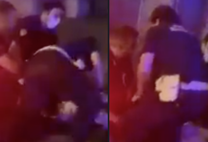 La persona fermata è a terra e bloccata da quattro esponenti delle forze dell’ordine. Dal filmato è possibile ascoltare l’audio: “Ecco cosa stanno facendo, quattro persone per un arresto. Lo stanno soffocando e non vogliono che riprenda la scena“.