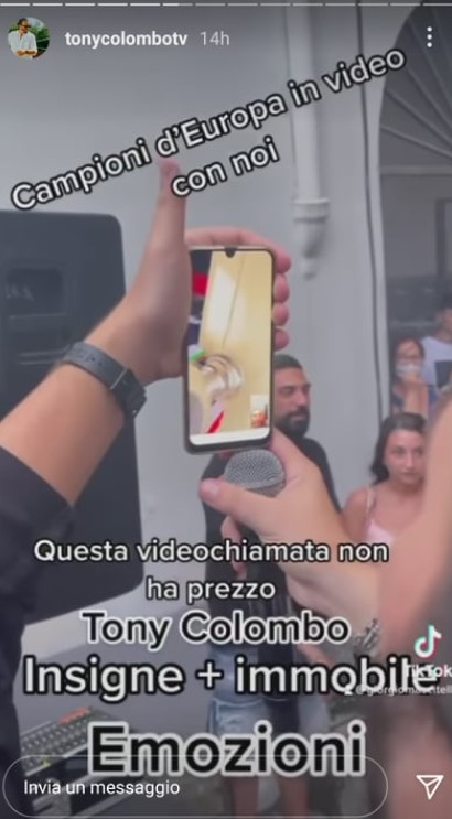 I tre sono probabilmente amici, così i due calciatori, attuali campioni d’Europa, non si sono tirati indietro quanto Tony Colombo ha chiesto loro di fare una videochiamata. E l’ha fatto proprio durante uno dei suoi show. Il tutto è documentato sulle storie Instagram del cantante neomelodico, che ha condiviso le immagini in cui prova a collegarsi con i due calciatori, anche se dall’audio si comprende che c’era qualche problema di audio. “Campioni d’Europa in video con noi. Questa videochiamata non ha prezzo. Tony Colombo + Insigne + Immobile. Emozioni”, questo il commento di Colombo alla sua storia.