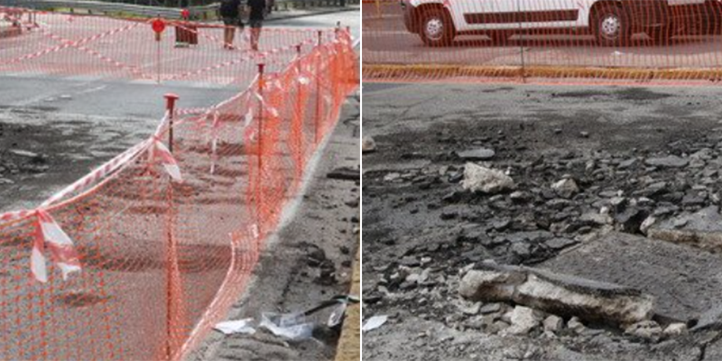 All’indomani della ‘tempesta’ si contano i danni. A Fuorigrotta il manto stradale ha ceduto in via Cinthia, provocando un evidente dislivello che ha reso necessario chiudere una parte della strada e l’uscita della Tangenziale.