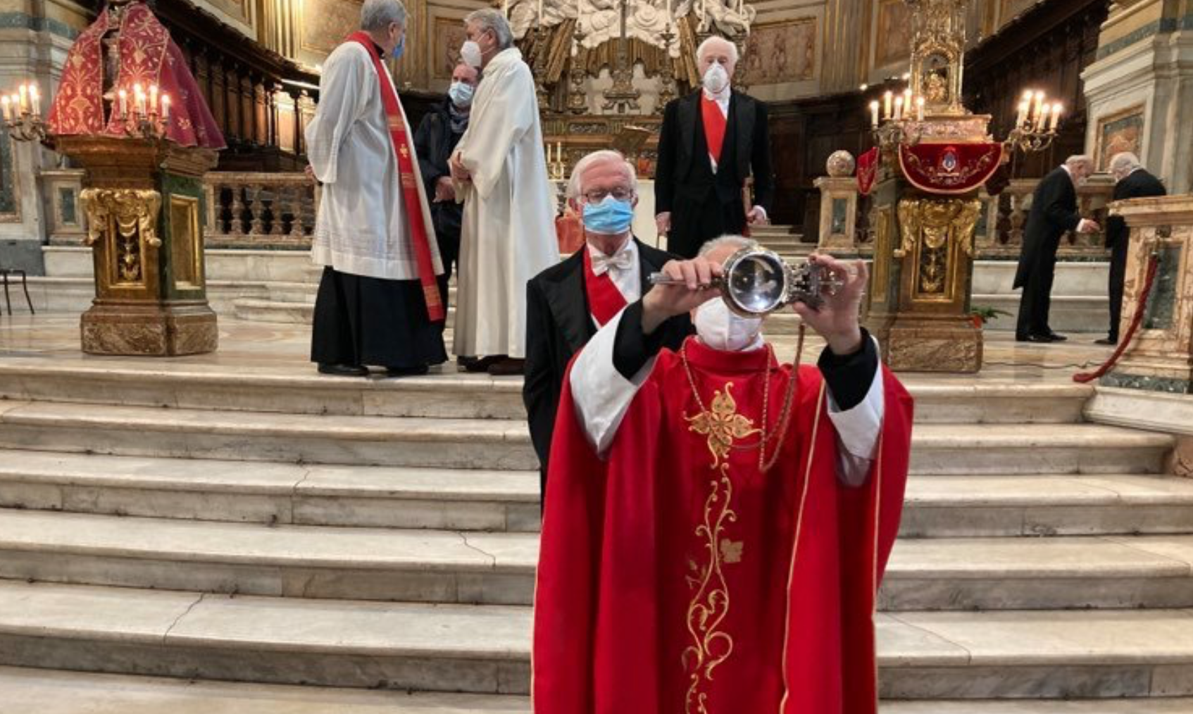 Domenico Battaglia si recherà nella Cappella del Tesoro, dove, con l’Abate mons. Vincenzo de Gregorio e il Sindaco Luigi De Magistris, provvederà all’apertura della cassaforte che contiene il Reliquiario con le ampolle del Sangue. Porterà, quindi, le ampolle sull’altare maggiore della Cattedrale dove presiederà la Solenne Concelebrazione Eucaristica nel corso della quale, se ci sarà il prodigioso evento della liquefazione del Sangue, darà l’annuncio ai presenti.