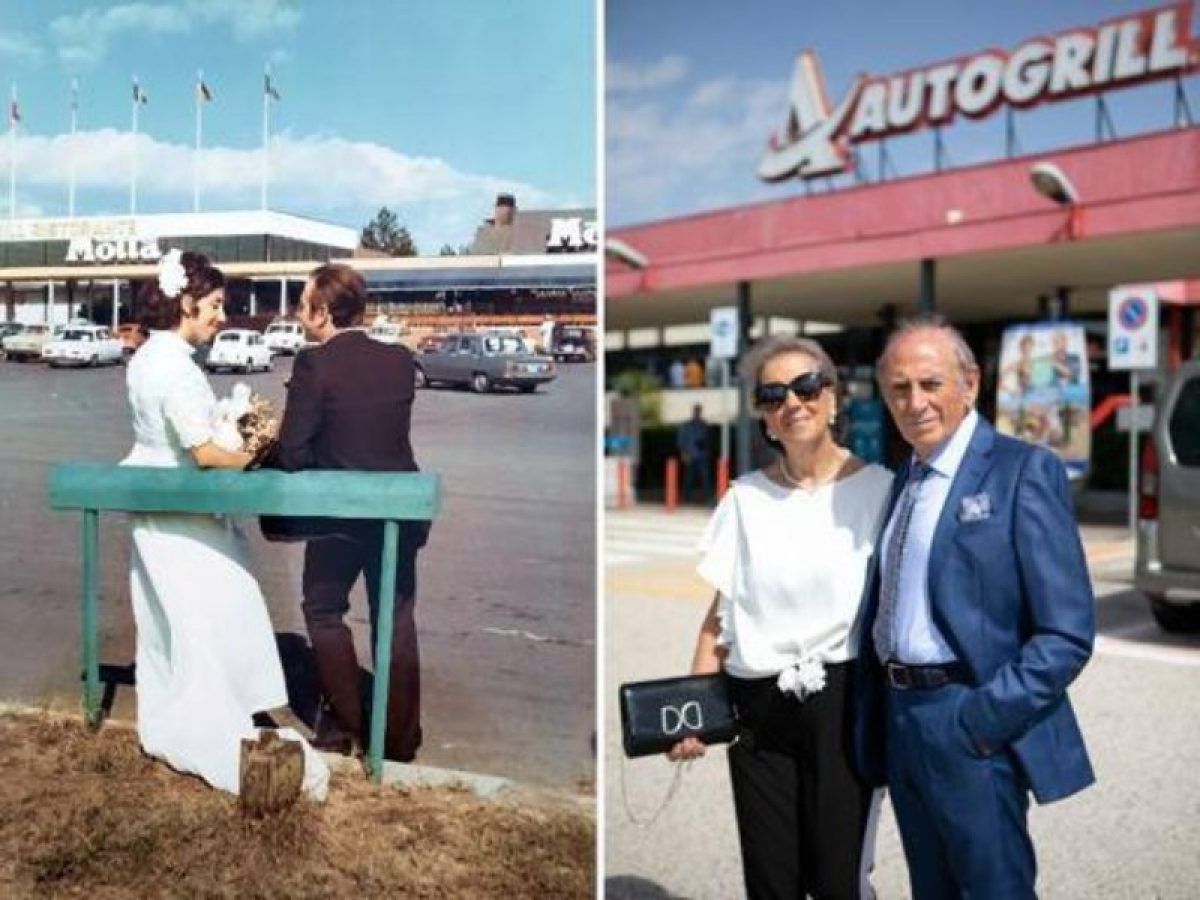 Il motivo di questa bizzarra location? Semplice, il 18 settembre del 1971 i due innamorati avevano organizzato il ricevimento nunziale proprio in quel punto esatto, dove cinquant’anni fa – al posto della stazione di servizio – era situato il ristorante Motta. Una decisione tanto romantica, quanto genuina. Caterina e Armando si sono conosciuti a una festa quando erano ancora studenti e il loro legame sentimentale è durato una vita intera. Un miracolo, visti i tempi che corrono. Al ricevimento c’erano anche i figli Fiorenzo e Daniele con un nutrito gruppo di amici e parenti. Ma non è tutto, la chicca che stiamo per raccontarvi scioglierà le riserve dei più cinici. E’ stato lo chef Domenico Cardella a preparare il menù del ricevimento e cioè il figlio del cuoco che 50 anni fa aveva cucinato per i neo-sposini. Insomma, questo è un amore la cui narrazione coinvolge più generazioni. Un legame destinato a rimanere impresso nella memoria di più persone. Ecco perché storie del genere vanno sempre raccontate.