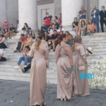 Per loro è stato uno spettacolo folcloristico cui assistere. Tanti turisti si sono affollati questo sabato pomeriggio davanti alla chiesa di San Francesco di Paola in piazza Plebiscito. Incuriositi dall’allestimento floreale imbandito per il matrimonio in grande stile, hanno atteso il momento più emozionante: l’arrivo della sposa con il padre.