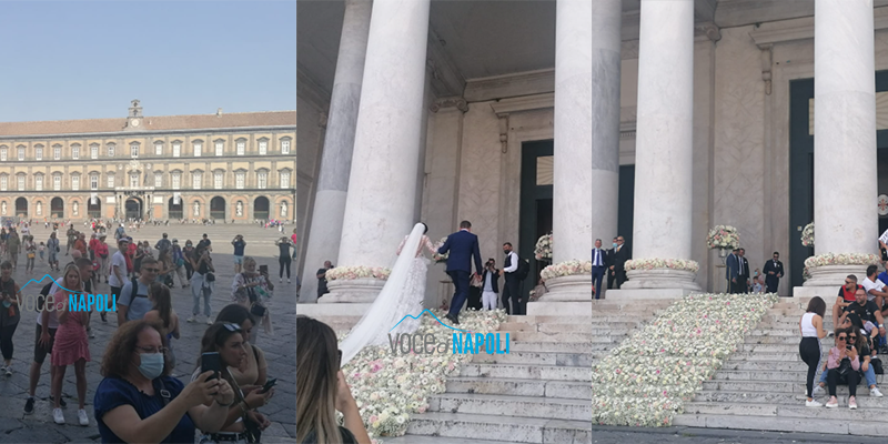 Per loro è stato uno spettacolo folcloristico cui assistere. Tanti turisti si sono affollati questo sabato pomeriggio davanti alla chiesa di San Francesco di Paola in piazza Plebiscito. Incuriositi dall’allestimento floreale imbandito per il matrimonio in grande stile, hanno atteso il momento più emozionante: l’arrivo della sposa con il padre.