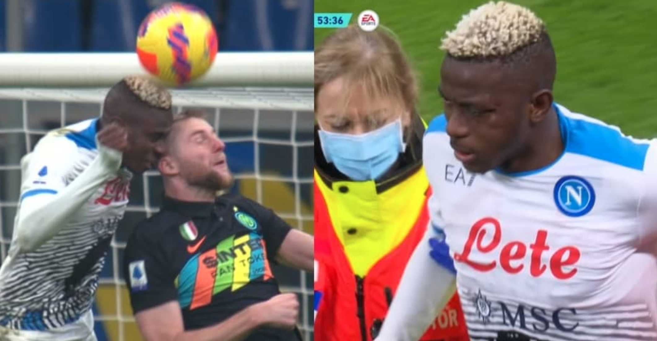 Grave infortunio per Victor Osimhen. Il calciatore del Napoli è rimasto gravemente colpito durante il match degli azzurri contro l’Inter allo stadio San Siro di Milano, Al 50′ l’attaccante nigeriano si è scontrato con la testa contro l’avversiamo, Skriniar. Ad avere la peggio l’azzurro.
