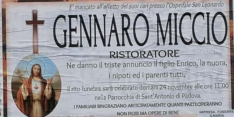 In tanti oggi, in tutta l’area stabiese, ricordano il decano dei ristoratori. “Un pezzo di storia della ristorazione di Castellammare che ci lascia” scrive un cittadino sui social. “Gran bella persona e un vero amico ciao Gennaro condoglianze alla famiglia” commenta invece un’altro. “Don Gennaro Miccio – spiega, invece, un altro compaesano – grande persona non ti dimenticherò avevi un cuore grande”.