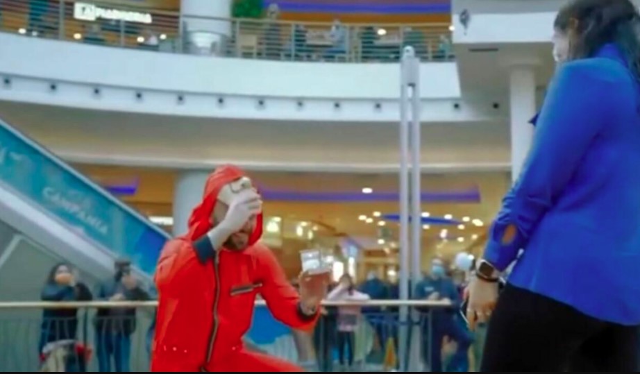 Proposta di matrimonio bizzarra al Centro Commerciale Campania a Marcianise, in provincia di Caserta. Un uomo ha deciso di travestirsi da rapinatore de “La Casa di Carta” e chiedere alla moglie di sposarlo.