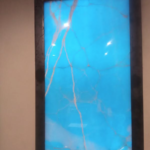 Una lastra di marmo di lapislazzuli di uno spessore di pochi centimetri retroilluminata fa la sua bella figura all’ingresso della’atelier. Una scalinata lineara mi conduce nella wonder room: una profusione di marmi di ogni sfumatura e venatura. Li vorreste tutti per rifarvi la casa.