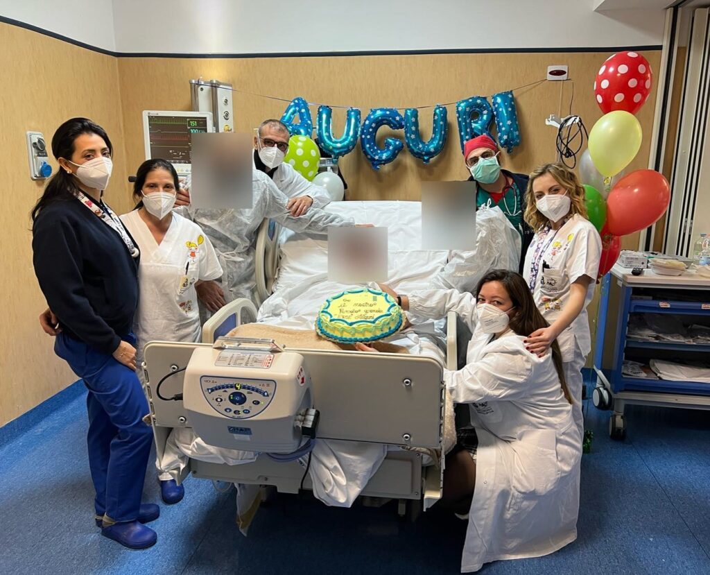 Dopo aver temuto il peggio ieri si è potuto così festeggiare la buona notizia insime a Mattias ed i medici del noscomio. “Su iniziativa della coordinatrice del reparto di rianimazione Angela Capuano – scrivo i sanitari sui social – e primario della Rianimazione dr. Geremia Zito e di tutta l’equipe che ha seguito il piccolino durante questo lungo periodo di sofferenza abbiamo organizzato una piccola festa privata con tanto di palloncini e Torta!“.