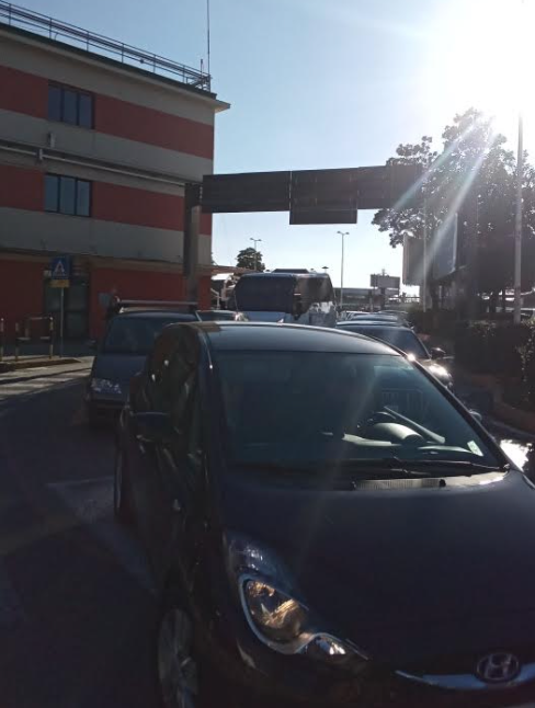 Mi lascio alle spalle un crogiolo di Via del Riposo, largo del Perdono… nomi che sembrano usciti da una letteratura ottocentesca per trovarmi nell’inferno urbano. All’incrocio per imboccare la strada dell’aeroporto dove convergono le quattro vie, senza semaforo, era tutto un ingorgo (passo io, no passo prima io, ma va fa …) e nessuno avanzava. Per percorrere un paio di km 40 minuti senza neanche arrivare a destinazione. La strada d’accesso all’aeroporto era ridotta a una sola corsia. A peggiorare la situazione pure i lavori in corso.