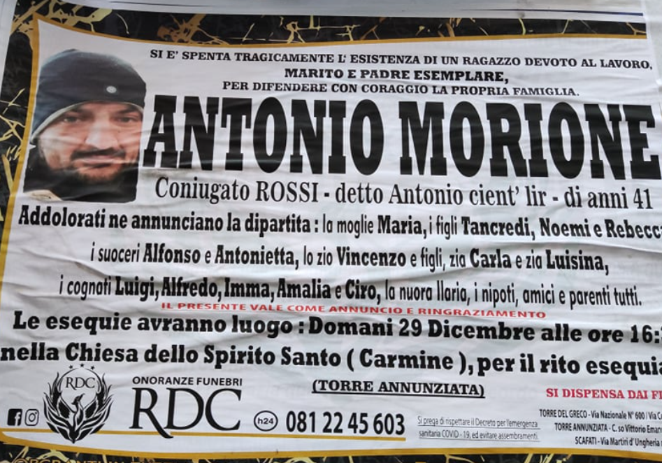 Una folla di persone si è riunita questo mercoledì pomeriggio nella chiesa del Carmine di Torre Annunziata per i funerali di Antonio Morione, il pescivendolo ucciso la sera del 23 dicembre nella sua pescheria di Boscoreale nel corso di una rapina. E’ stato don Mimmo Battaglia a celebrare la funzione.