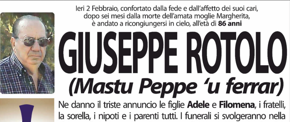 Soltanto sei mesi fa è scomparsa la moglie Margherita. Sono stati tantissimi i messaggi d’affetto e cordoglio per la famiglia e le figlie Adele e Filomena. Il funerale ci sarà presso la chiesa di S.Antonio nel Convento dei Frati Minori alle ore 10.