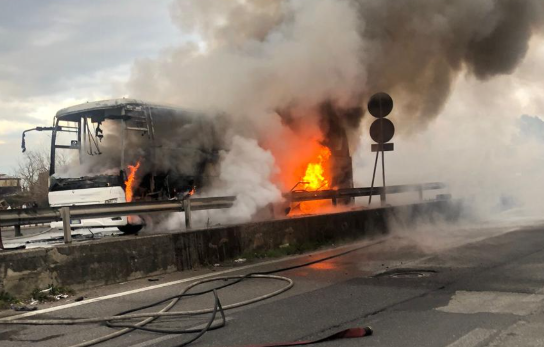 Momenti di paura si sono vissuti questo lunedì mattina lungo l’Asse Mediano quando un autobus turistico è andato in fiamme. Sul posto sono intervenuti i carabinieri della compagnia di Giugliano e i Vigili del Fuoco.