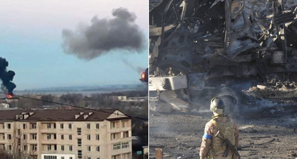 Immagini che si aggiungono a quelle di un video pubblicato nelle ultime ore dal Guardian di una base militare in fiamme a Brovary, a 25 km a nordest di Kiev, dopo un attacco russo.