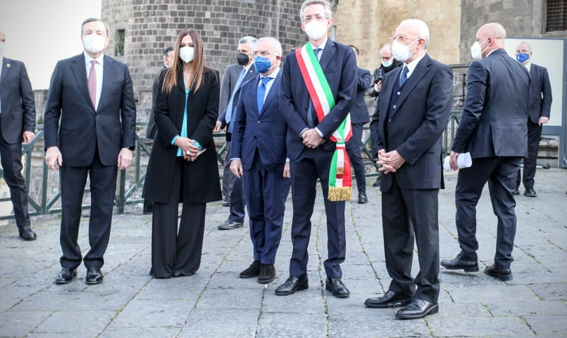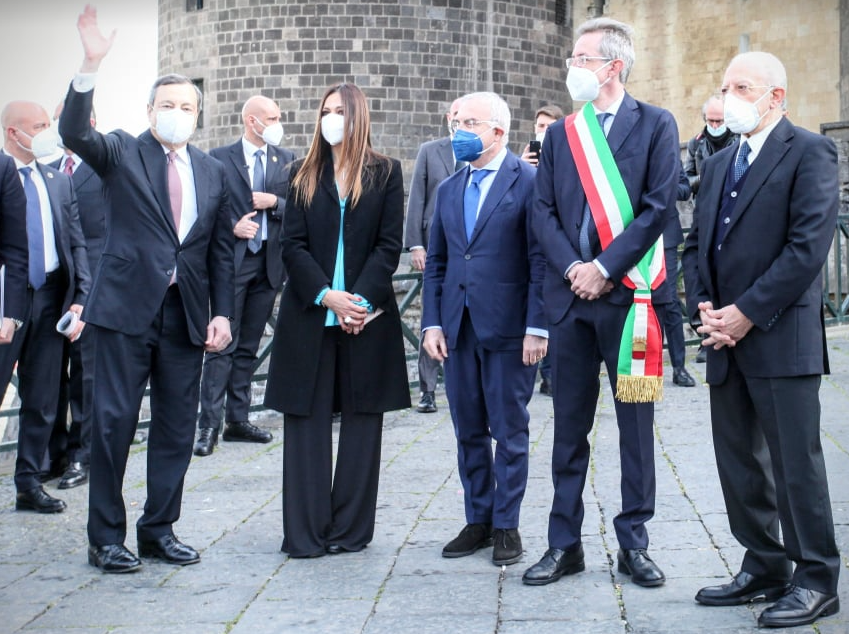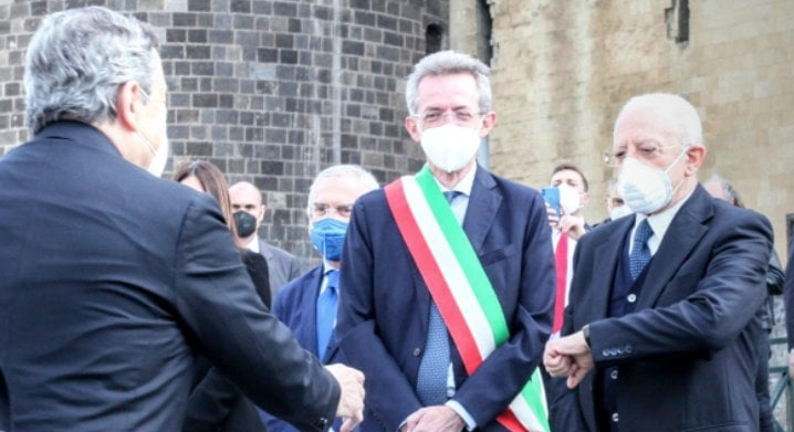Presenti le principali autorità istituzionali, dal presidente della Regione Campania Vincenzo De Luca, agli assessori e consiglieri comunali. Il Procuratore capo Giovanni Melillo, il questore Giuliano, i vertici di Carabinieri e guardia di Finanza. I rettori delle università cittadine. C’è persino un alto esponente della Diocesi. Tutti per assistere alla firma del ‘Patto per Napoli’ tra il Sindaco Gaetano Manfredi e il Presidente del Consiglio Mario Draghi.