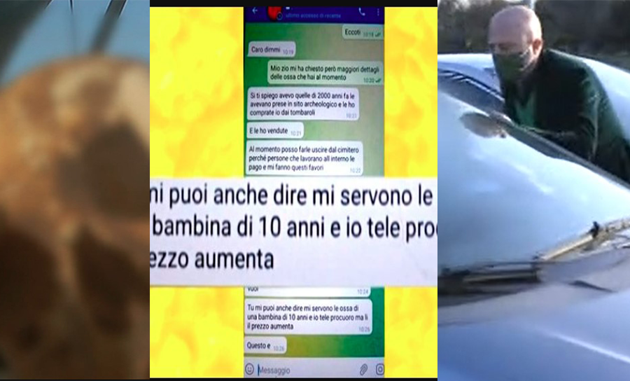 Il servizio del gesto vergognoso è stato mandato in onda da Striscia La Notizia ed eseguito da Luca Abete. L’uomo, chiamato Maestro Medaso, di occupa del traffico di ossa umane: sia teschi che ossa del corpo. Il costo varia in base al tempo impiegato di decomposizione. Ci sono infatti resti molto recenti come teschi con ancora capelli attaccati. L’uomo si procurerebbe le ossa con la complicità di addetti del cimitero, abbondantemente pagati.