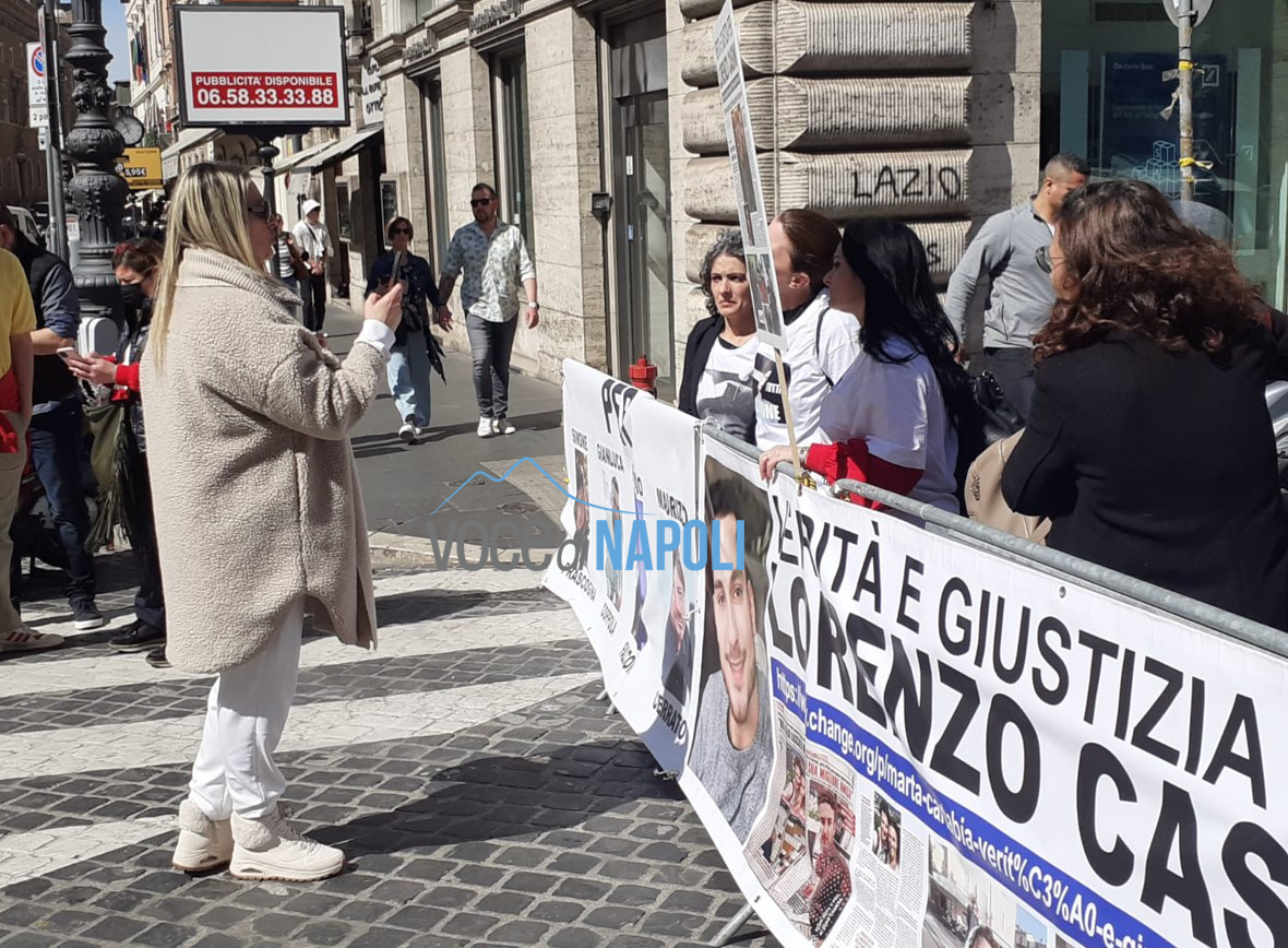 Natascia Lipari, Tania Sorrentino ed Elisabetta Casini, durante il sit in tenutosi in piazza Santi Apostoli,  hanno incontrato il Prefetto di Roma e gli hanno chiesto la riapertura delle indagini sulla morte di Lorenzo. Quella di oggi è stata una manifestazione per chiedere giustizia, un’occasione per ribadire quanto da tempo chiedono questo donne, nuove leggi per punire chi commette simili delitti, anche se minorenni.  Una manifestazione che diventa ancora più dolorosa dopo l’omicidio di Giovanni Guarino: “Oggi ci troviamo qui a Roma – dice Anna Gaeta – per tutte le vittime della criminalità comune. Vogliamo dare un nostro grido per la giustizia e legalità, le nostre strade sanguinano ancora. Noi vogliamo che le nostre vittime abbiano giustizia, non vogliamo vendetta. Vogliamo che le leggi cambino affinché sia fatta una reale giustizia. Nessuna di noi dovrebbe essere qui, ma dovrebbe essere lo Stato a starci vicino. Due giorni fa a Torre del Greco è stato ammazzato un altro ragazzo per futili motivi, basta è il momento di cambiare le leggi. Non ci deve essere differenza di vittime, le vittime sono uguali, non esistono vittime di serie A e B, lo Stato deve prendersi cura di noi e non degli assassini“.