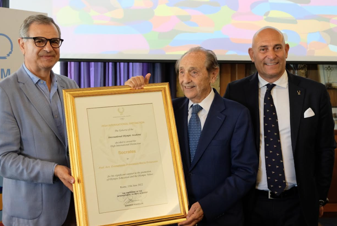 Nell’occasione, il Prof. Avv. Emmanuele F. M. Emanuele è stato insignito da Stavri Bello, Segretario Generale del Comitato Olimpico Albanese, della prestigiosa onorificenza “Socrates”, istituita da Isidoros Kouvelos e conferita dall’Accademia Olimpica Internazionale, «per il fondamentale supporto dato alla promozione e diffusione dell’educazione allo sport e dei valori olimpici».