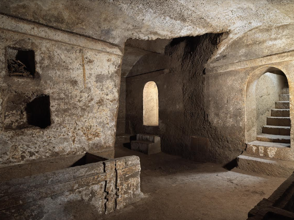 Quasi un centinaio di gradini, anzi gradoni, scolpiti nel tufo che conducono nel ventre molle e poroso della Sanità. In realtà l’antico sepolcro fu scoperto, integro nelle pitture e nel ricco corredo funebre, dal Barone di Donato nel 1889, artefice involontario di un ritrovamento incredibile.